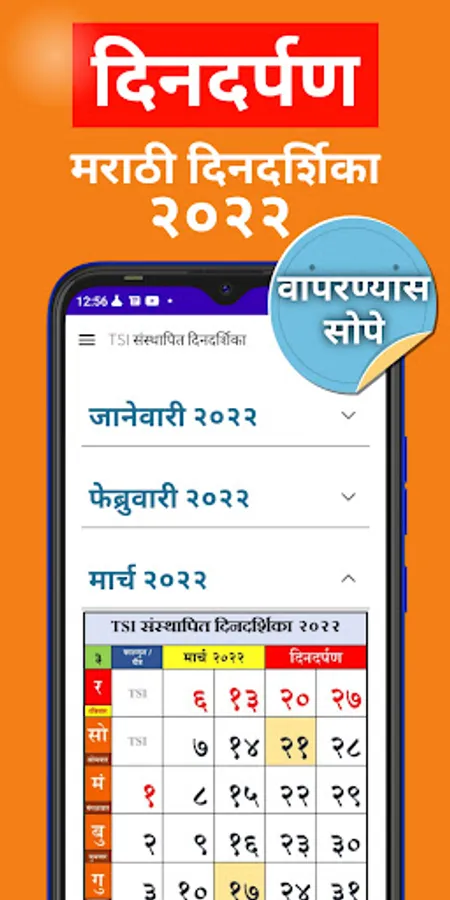 The calender is developed by the TSI and it provided all the basic information about marathi events and festivals. With 2022 calender you will also get 2021 calender in this initial release.
