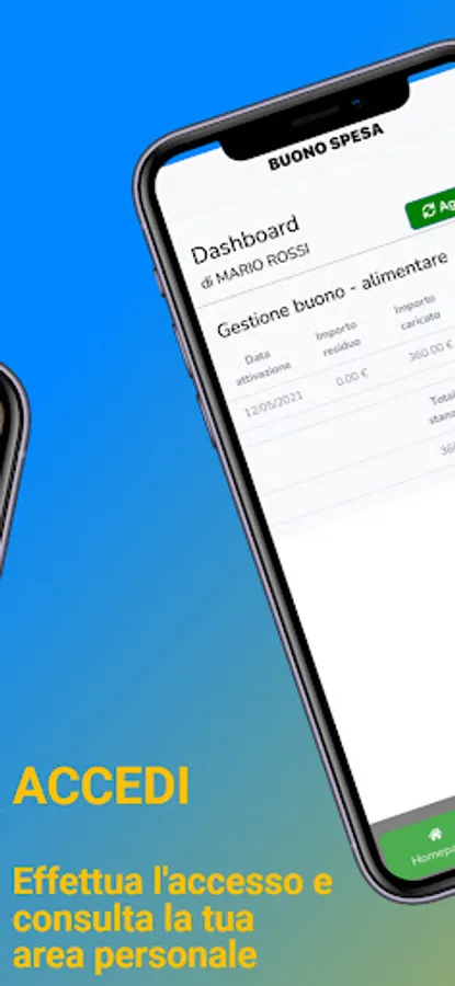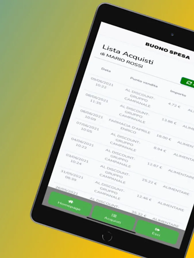 App dedicated to the beneficiaries of the shopping voucher that allows access to their digital purse to consult the assigned, residual and spent credit. Furthermore, with a simple "tap" it will be possible to view your purchase history and the merchants affiliated to the system.