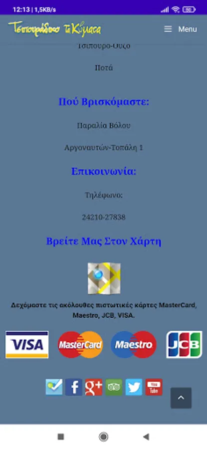In this application you can see our menu, contact us, find the location of companies, see useful information about volos, Share on Social.