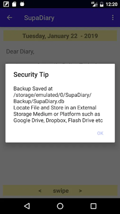 Supa Diary is an Offline Diary App with a seamless feel coupled with Flexible Security and Backup options.