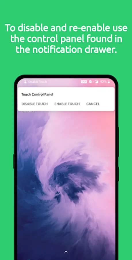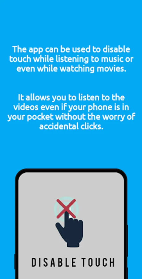 "Disable Touch" lets the user disable the screen touch whenever required to avoid accidental clicks.