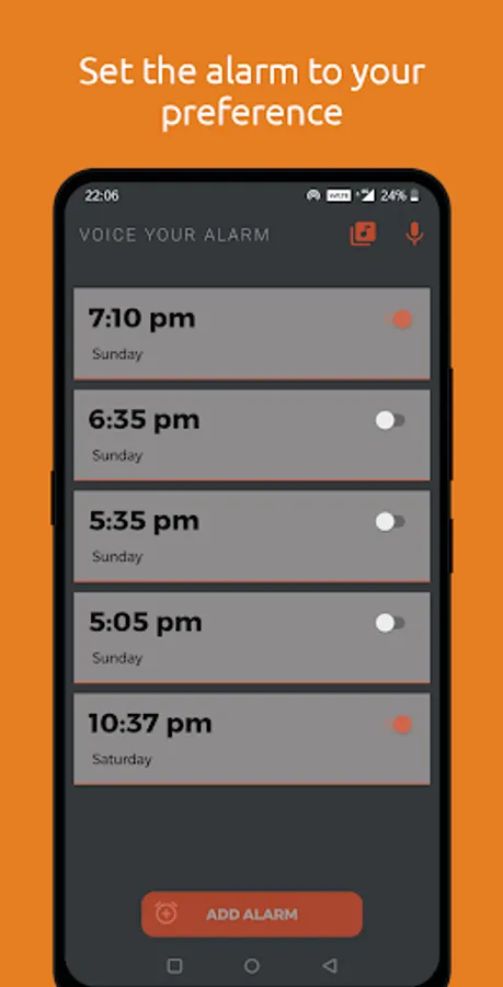 Voice your alarm is an unique app which allows you to wake up to your favorite voices of your friends,family and even your role-models.You just have to record the voice using the in built audio recorder and keep it as a ringtone for your alarm.You can even preview it with the media player present in the Voice Your Alarm app.