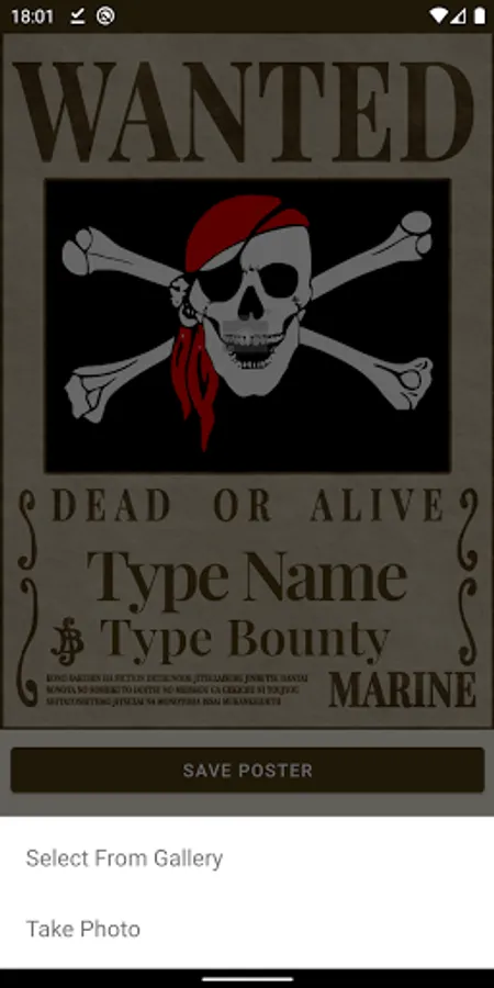 Make your own wanted poster! Take a picture and enter your name, bounty. Poster will be generated as you seen!