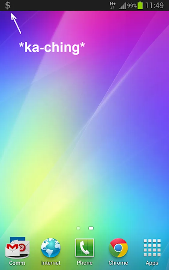 - Phone vibrates every time you get paid (*Ka-ching*)