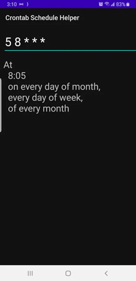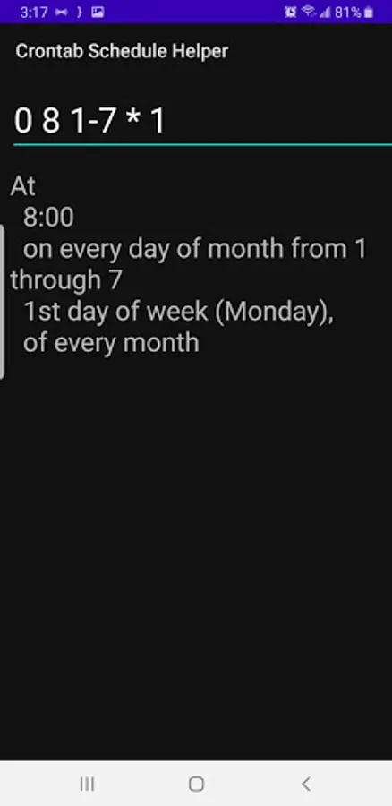 Helps you analyze crontab schedule and validates schedule for you. Only standard schedule parts and format are supported.