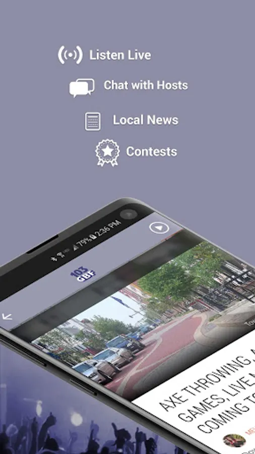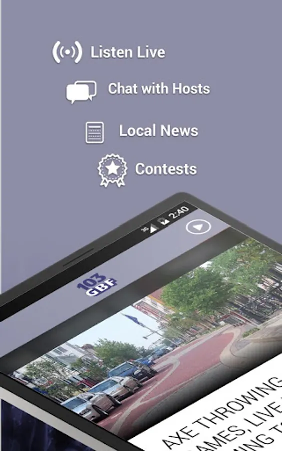 Get the latest news and information, weather coverage and traffic updates in the Evansville area with the 103GBF app! Listen to the station live and interact with the hosts – you can direct message and call the show directly from the app. Receive alerts about breaking news, contests, and more before anyone else. Save articles and viral stories for reading later, and share on Facebook and Twitter.