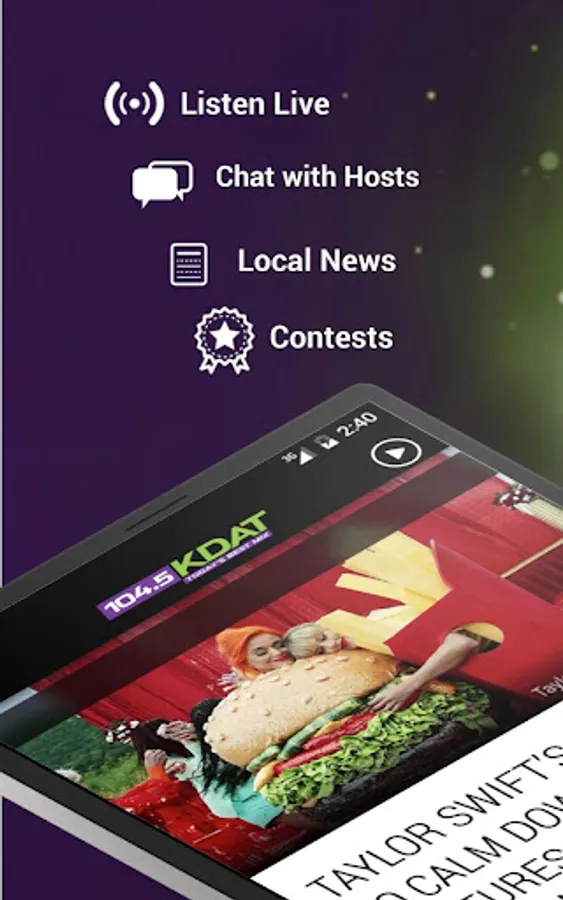 This is the latest version of the 104.5 KDAT app, and many more features are already planned. Please share your feedback from within the 104.5 KDAT app by clicking the “Send App Feedback” link in the menu.