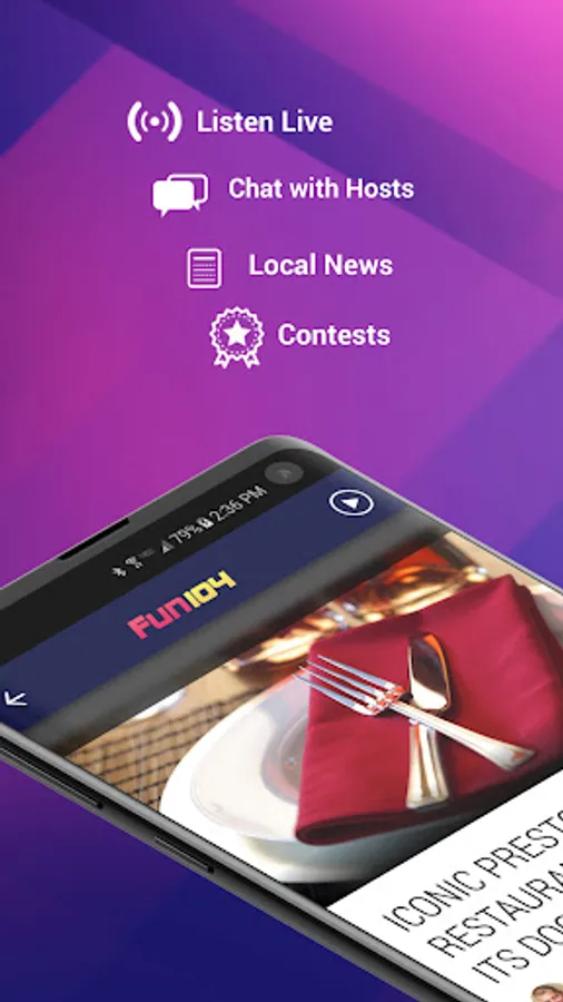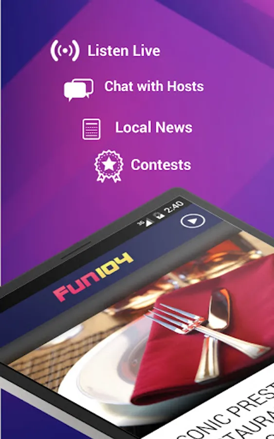 • Listen to our shows, plus receive weather and traffic updates live from Fun 104 Radio