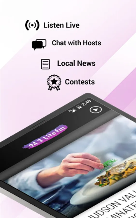 • Listen to our shows, plus receive weather and traffic updates live from 94.3 Lite FM Radio