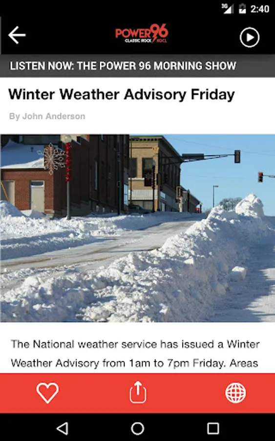 Get the latest news and information, weather coverage and traffic updates in the Faribault Owatonna area with the Power 96 app! Listen to the station live and interact with the hosts – you can direct message and call the show directly from the app. Receive alerts about breaking news, contests, and more before anyone else. Save articles and viral stories for reading later, and share on Facebook and Twitter.