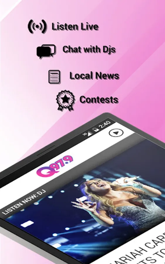 • Listen to our shows, plus receive weather and traffic updates live from Q97.9 Radio
