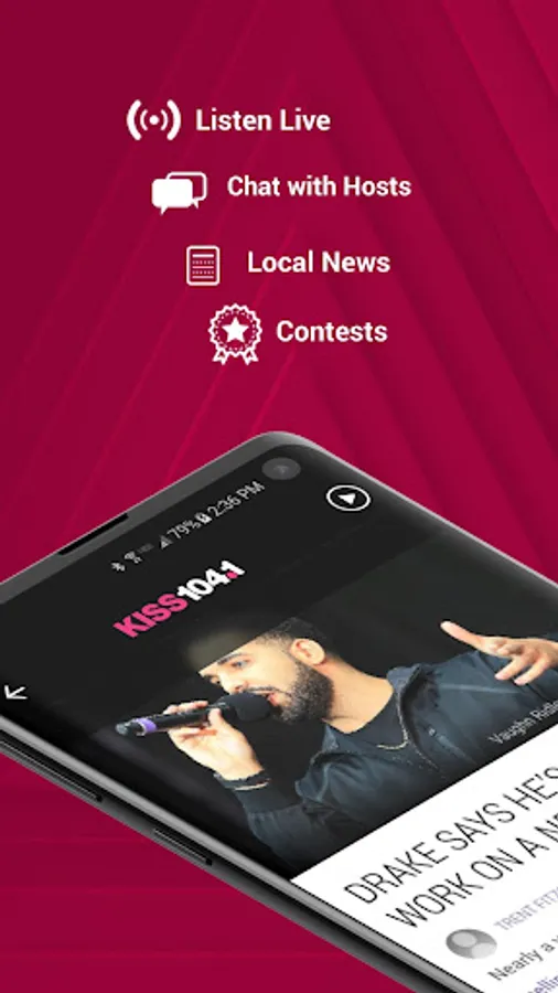 • Listen to our shows, plus receive weather and traffic updates live from KISS 104.1 Radio