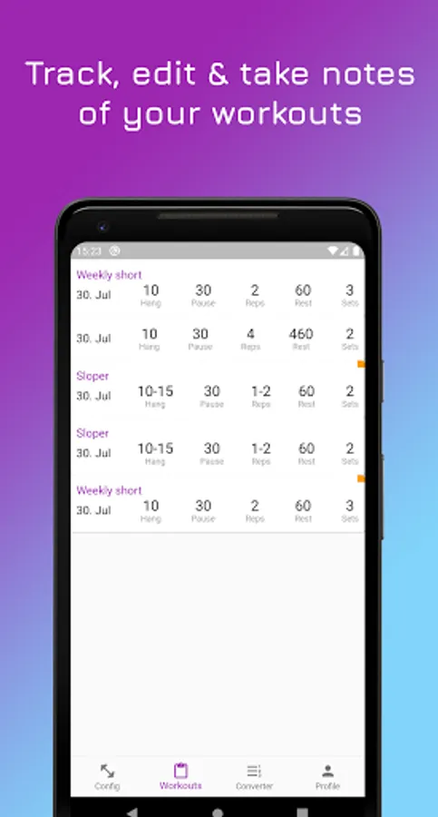 Set your training times and reps easily within seconds and dive right in, while BoulderFIT keeps track of your workouts.