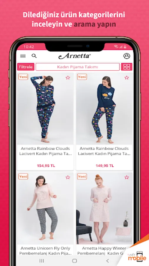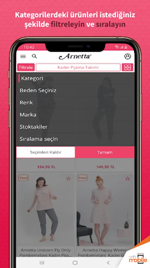 You can download our Arnetta mobile application from anywhere, you can easily access hundreds of products in the clothing and underwear categories and you can be informed of the opportunities anywhere at any time. Download the app now and shop easily!