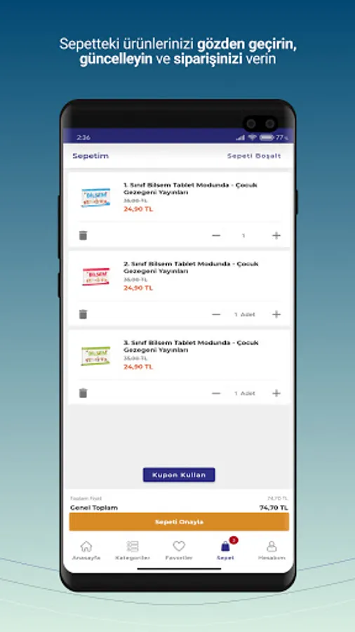 With the application, you can see the products from anywhere and at any time, examine the product pictures in detail and enlarge them.