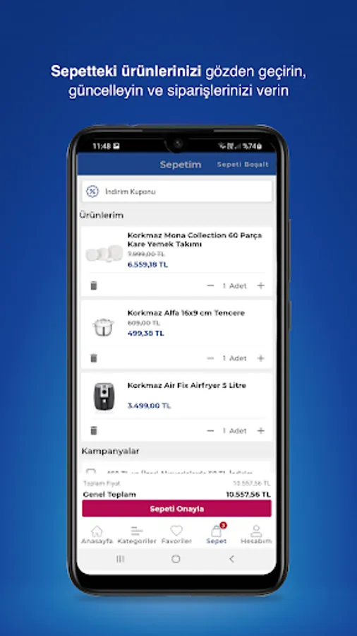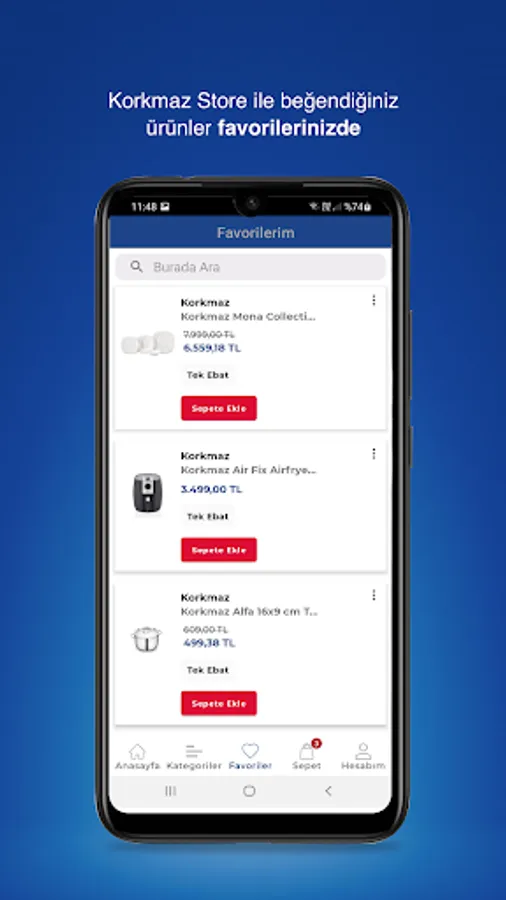 *Special Deals, Advantageous Prices and Safe Shopping Privilege for Korkmaz application.