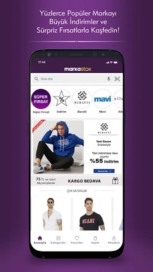 By downloading the Markastok application, it is now very easy to reach famous brands with great discounts. Buratti, Lela, Jack&Jones, Levi's, Nautica, Lufian, Lacoste, Converse, Vans, United Colors of Benetton, Dockers, Blue, U.S.Polo, Hummel, Grader, Lumberjack, Scooter, Slazenger, Caterpillar, Harley Davidson, Abbate, Sabri Special, You can enjoy discovering the new season products of Pierre Cardin, Vero Moda, Only and many more brands with discounts and reliable shopping service. You can easily access different campaigns, surprise discounts and much more every day, anywhere, anytime.