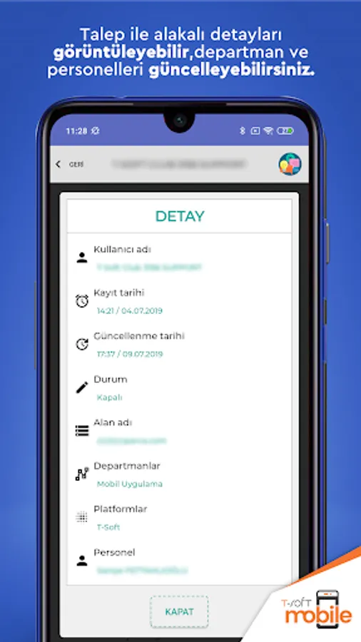 You can view the details related to the request and update the department and personnel.