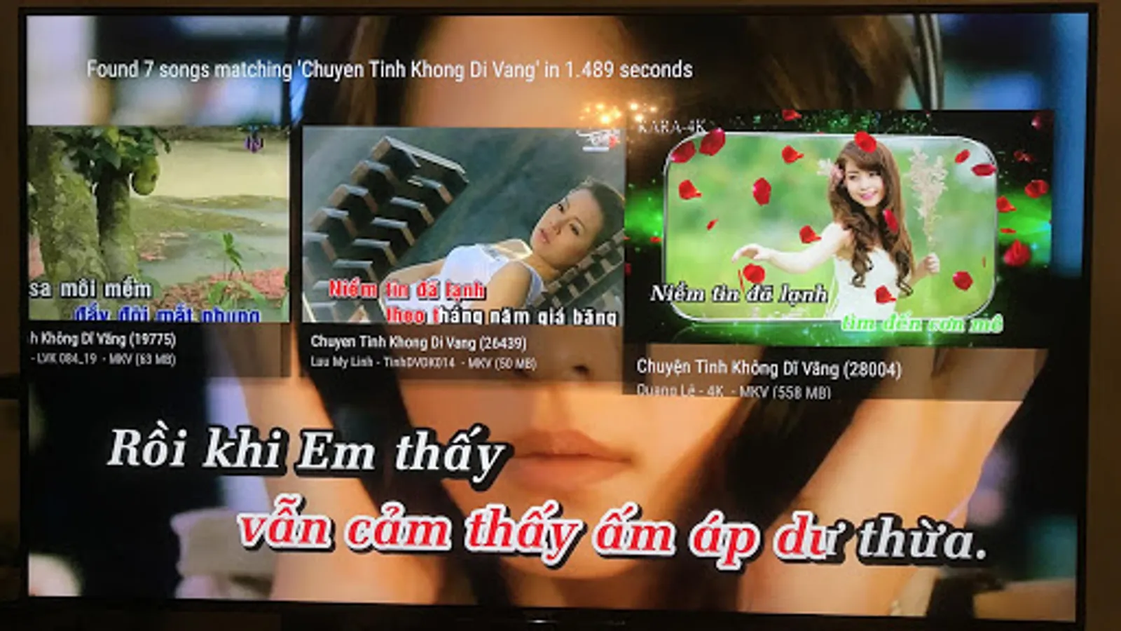 The ultimate karaoke player for your Android TV. Plays virtually any song format (mkv, mp4, vob, avi, m4v, mpg, etc..) and controllable from your phone or tablet.