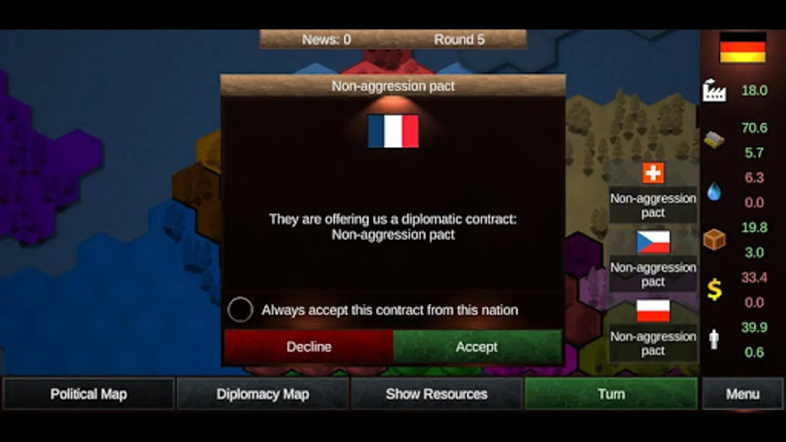 - Declare a war, make peace, form alliances, send gifts, warnings, trade embargos or offer non-aggression pacts to other AI controlled nations in the world
