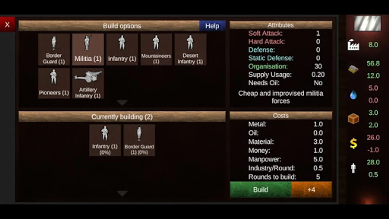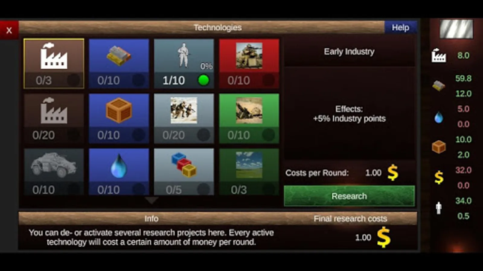 - Use your nations static amount of industrial points to generate money income, supply your army or complete your production