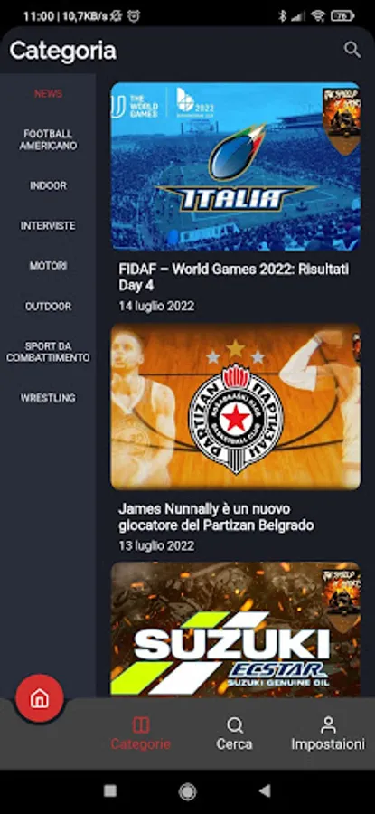News from the world of sport and in Italian. No self-translation and no special alignment. We are talking about any sport whether it is European or American.
