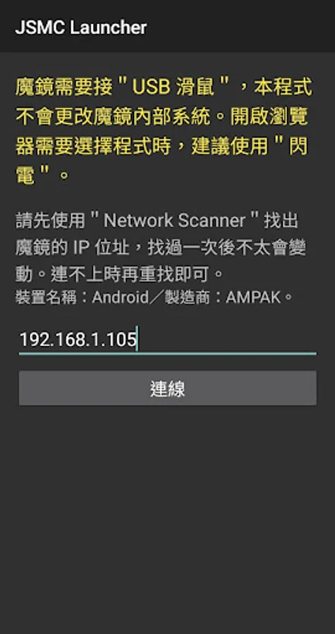 1. You need to know the IP of the magic mirror first. You can use the Network Scanner tool to search for the device name as Android. If there are multiple devices that cannot be distinguished, turn off the magic mirror and compare again.