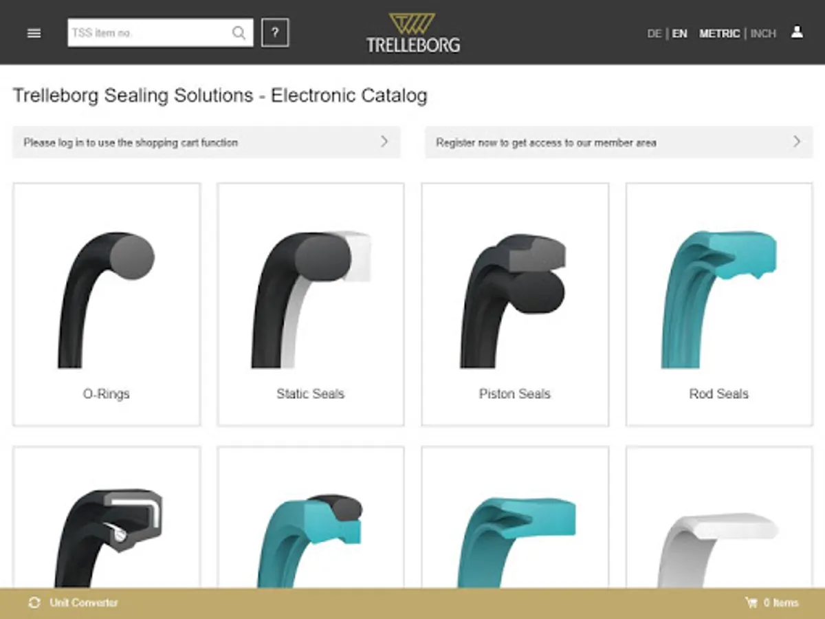The Seals e-Catalog brings the high-powered function of our web e-Catalog to you in a mobile friendly app. You can find detailed product descriptions, material data sheets and even compare multiple seals with the app. If you need help finding a specific product, you can use the convenient search tool to filter products by item number, type of seal or even the operating conditions.