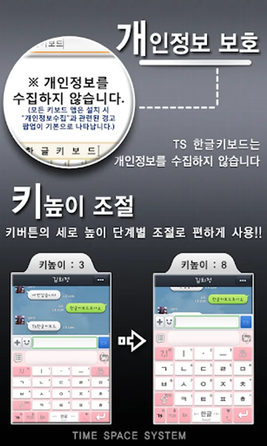 - Settings -> Language & keyboard -> Select 'TS Hangul keyboard' -> Long touch at any text input box -> Select 'Input method' on the edit menu -> Select 'TS Hangul keyboard'
