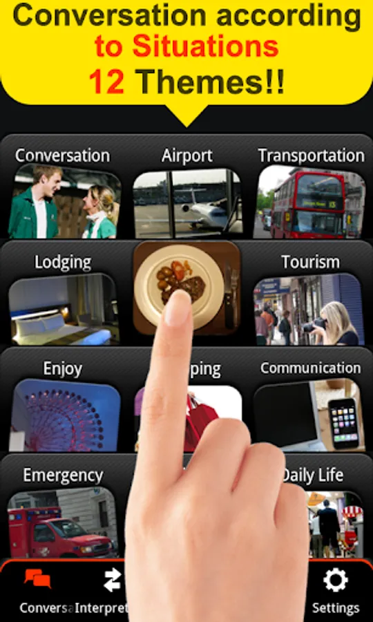 - As this app contains various categories and contextual sentences, you can communicate with people in other countries by taking full advantage of this app without additional material (phrase books, dictionaries, etc.).