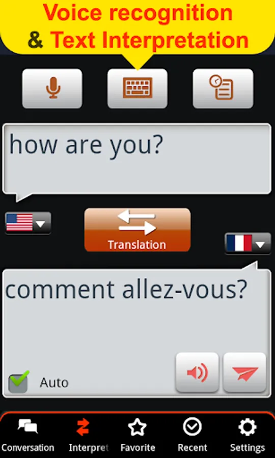 *Interactive translation for conversations in a foreign language, including a native speaker's pronunciation reference