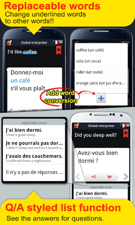 Now it’s time to get away from the outdated conversation books and enjoy Global interpreter that guarantees your best foreign language conversation!!