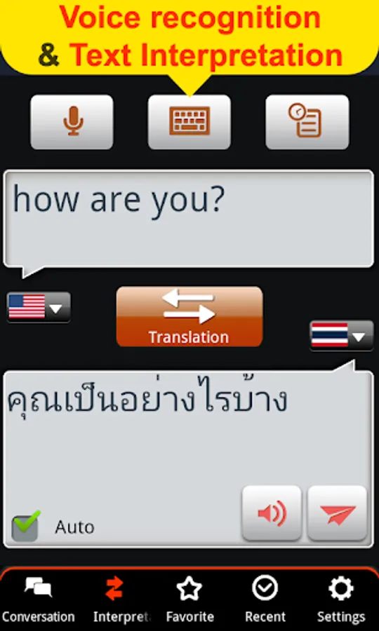 *Interactive translation for conversations in a foreign language, including a native speaker's pronunciation reference