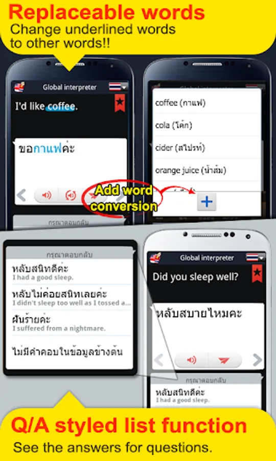 Now it’s time to get away from the outdated conversation books and enjoy Global interpreter that guarantees your best foreign language conversation!!