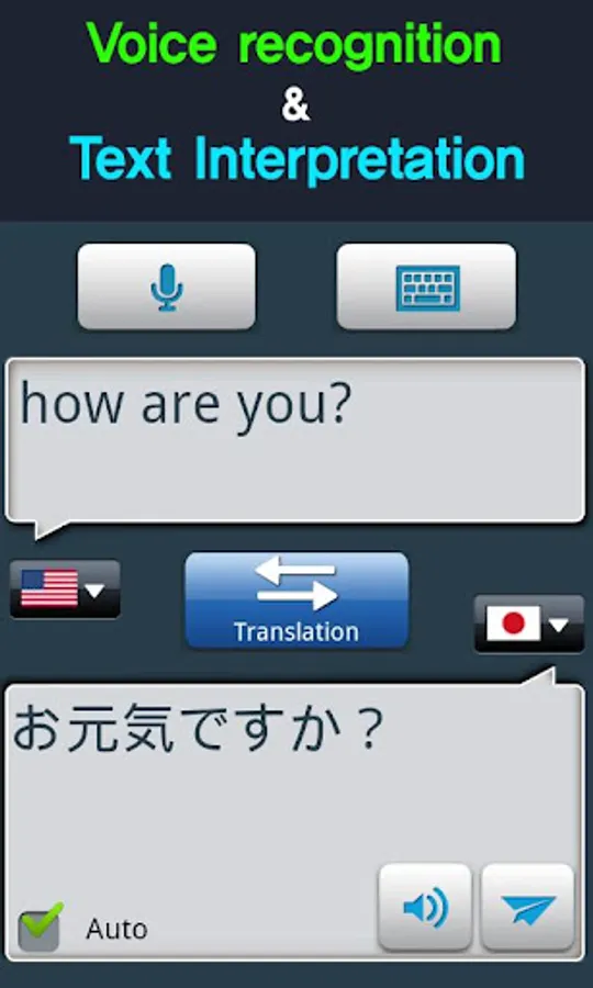 - Show the screen to the person you are talking. The app automatically plays a native speaker's voice using the gyro sensor.