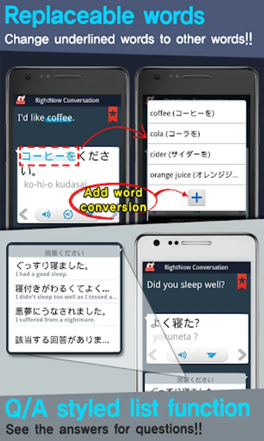 ★With the RightNow Japanese Conversation app, you can communicate with people in other countries, anywhere in the world.