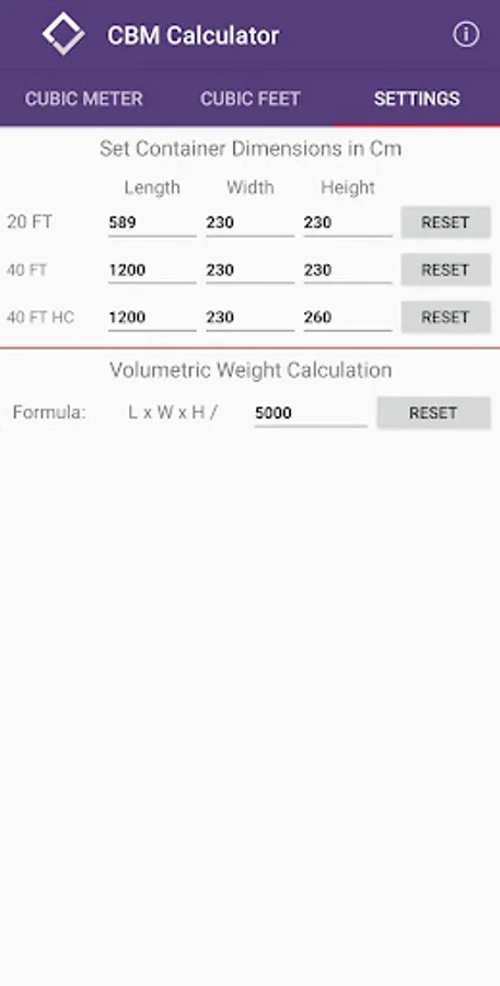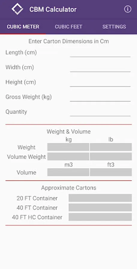CBM Calculator is a utility to calculate consignment's weight and volume.