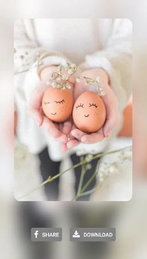 Spezia le vostre celebrazioni di Pasqua con l'applicazione di Pasqua Felice. Le applicazioni Happy Easter offrono una selezione di biglietti da visita e carta da parati in linea colorati. È possibile personalizzare le cartoline con i vostri desideri speciali e speciali. È libero e molto facile da usare. Basta scaricare App Happy Easter dal tuo smartphone e puoi iniziare a scegliere la tua carta desiderata. In seguito, puoi condividerlo ai tuoi social network dopo essere stato personalizzato.
