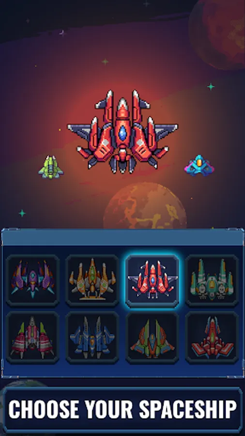 - 10 different spaceships and drones with various power up. Let’s choose the best one for you. Commander!