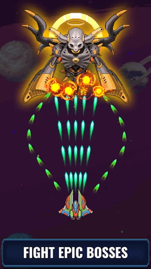 - Collect as much as coin and game to upgrade or evolve your spaceship to fight with giant enemies and alien invaders.
