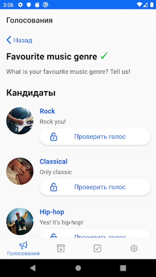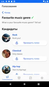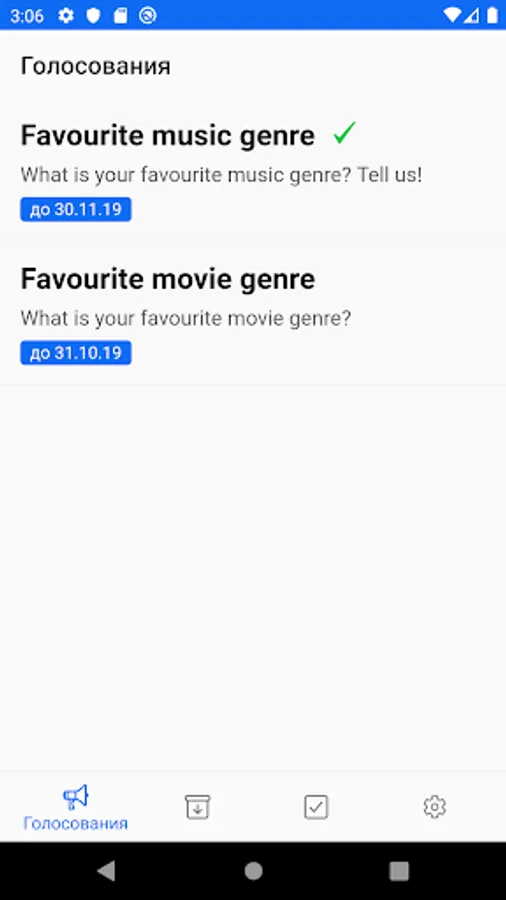 The application allows you to take part in the polls and polls conducted at Tomsk State University.