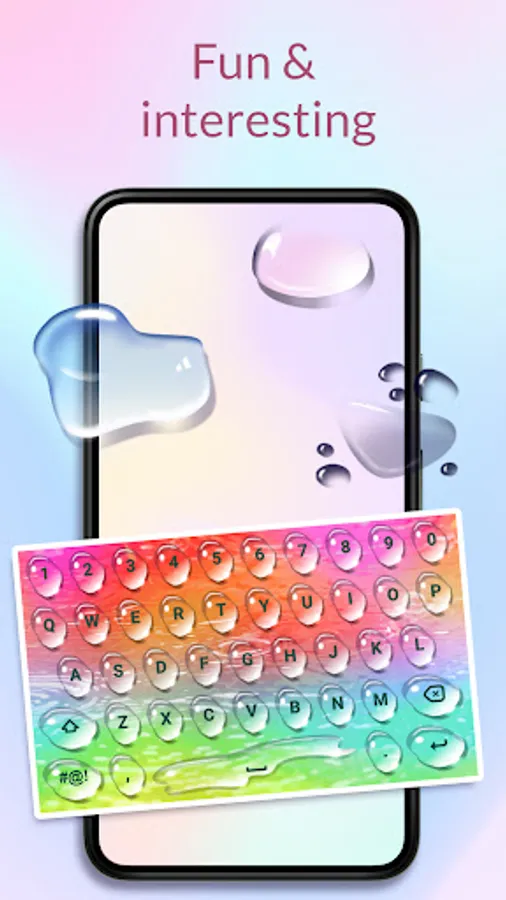 You want to “change your keyboard color” into something authentic? If so, we have a perfect idea! Personalize all the options and just start typing. Our keypad colour changing app will help you express yourself better and in a fun way. Look no further because this color keypad app have everything you need! Rain drop keyboard water bubble theme colorful will decorate your phone in the most unique way. Color keyboards with sounds will become your favorite app in no time. Show everyone how cool you are and stand out from the crowd. Decorate your phone and personalize - options are endless. Select language, set up hotkeys and adjust vibration and sound. “Color keyboard themes and skins” that have moving rain effect are so much fun!
