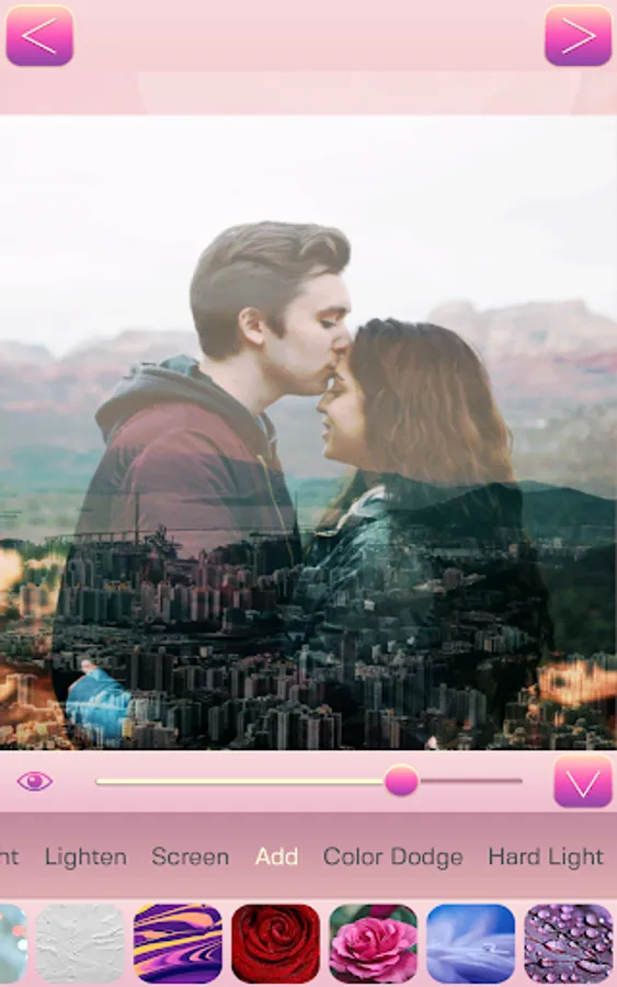 If you want to surprise your loved one for Valentine's Day and express your true feelings, use this free app with amazing overlapping pictures options, frames and add cute text. This "romantic photo blending" app contains a lot of filters and romantic decorations no other editor has, which allows you to be creative with an incredible picture editor with overlay and overlap images using just your mobile device. Download Couple Photo Blender Mixer for free and capture the best moments with your loved one!