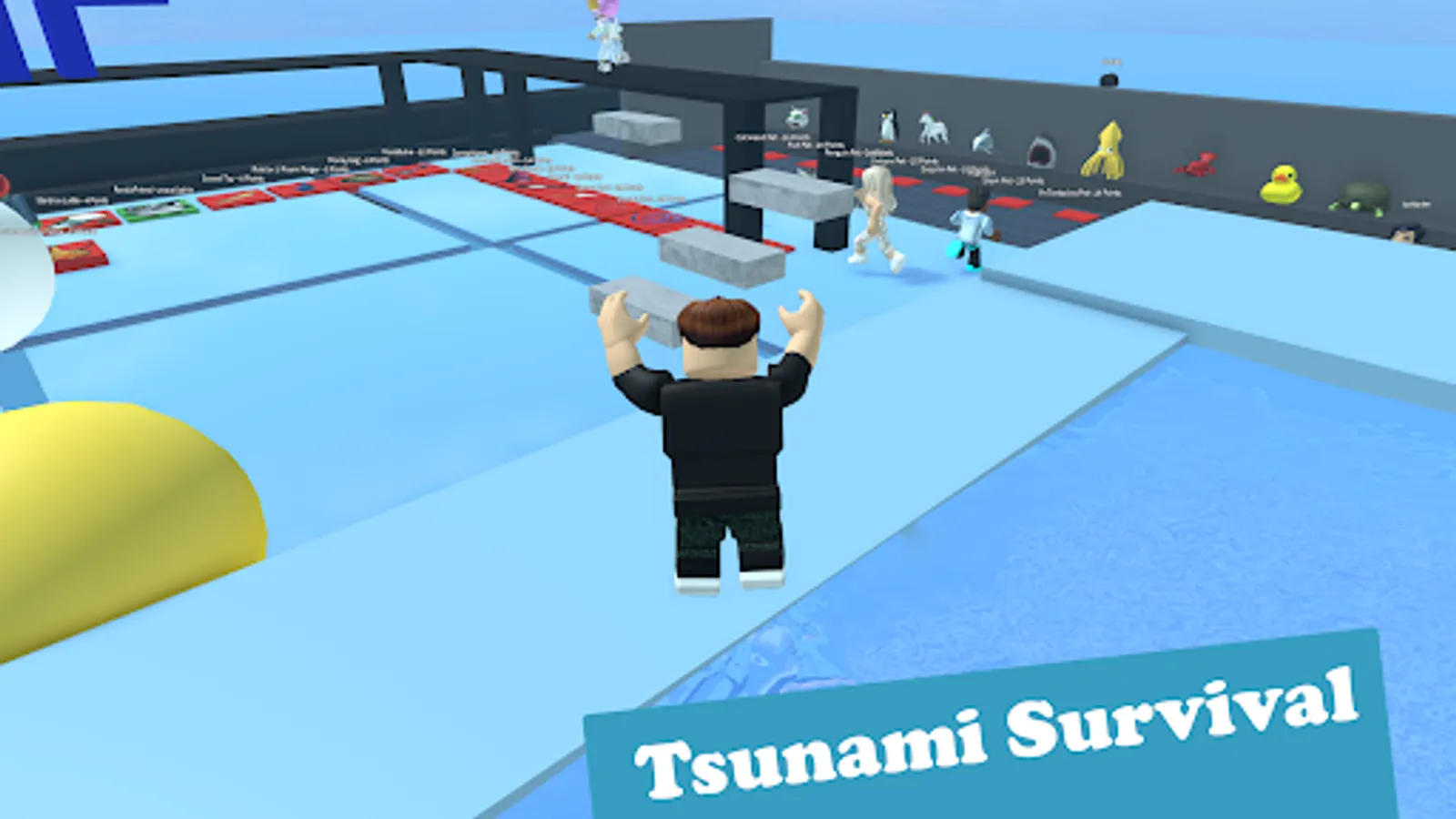 Play Tsunami Survival with your friends. How about participating in a Crazy Run, breaking the record at the Pet Parade or delivering pizzas to earn coins robux? Enter the Arcade and win all challenges!