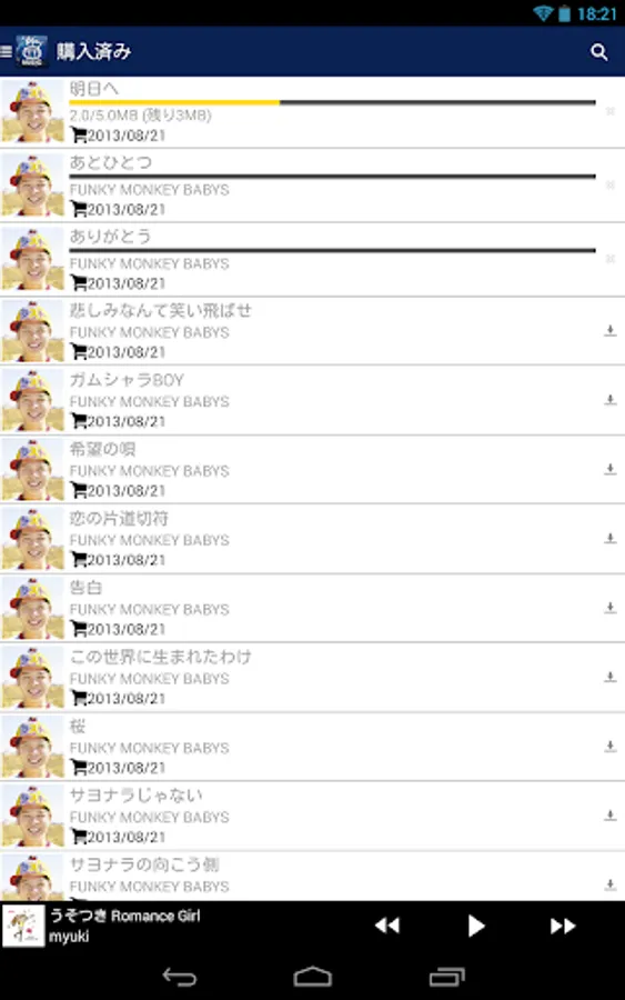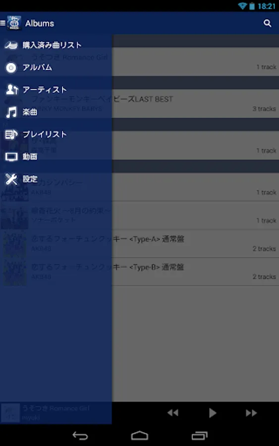 You can enjoy not only the songs purchased from Musico, but also the songs transferred from your PC,