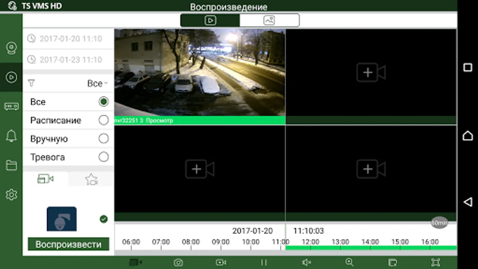 TS VMS HD enables you to view video and listen to audio signals in real time, as well as playback of recordings from the archive device.