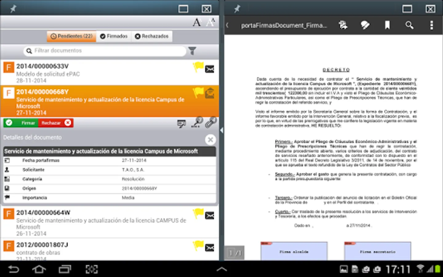 * The mobile Portafirmas. With this application we can make: