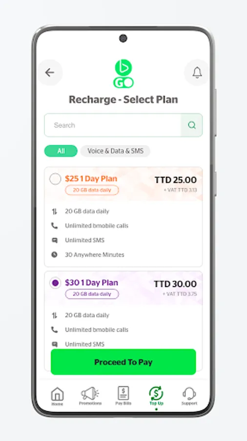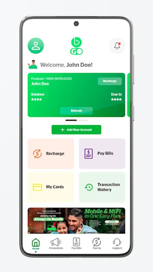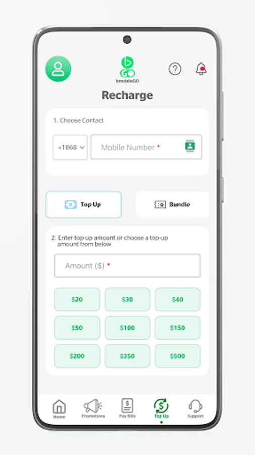 • Link family and friends to your bmobileGo account: make bill payments on behalf of family and friends or send them top-ups and bundles using our simple dashboard