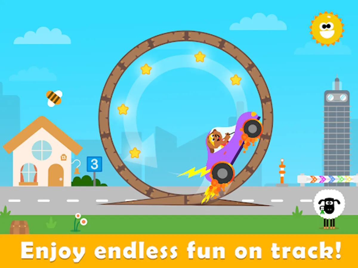Are you ready for an exciting car game for kids 2-5 years old? If yes, then you’re at the right place to enjoy the wonderful experience of car racing by choosing a track of your own choice. This game enables you to enter beautiful locations around the world to enjoy the essence of your surroundings by interacting with the object on the way. These tracks can be set up in various ways, including loops, jumps, twists, and turns. Toddlers can race their cars around the track.