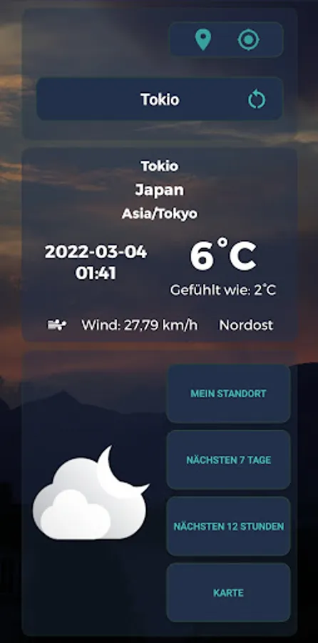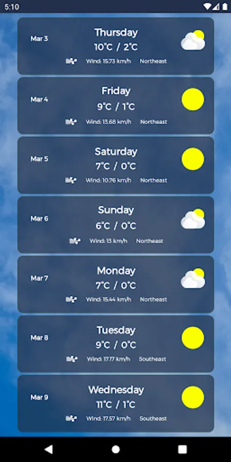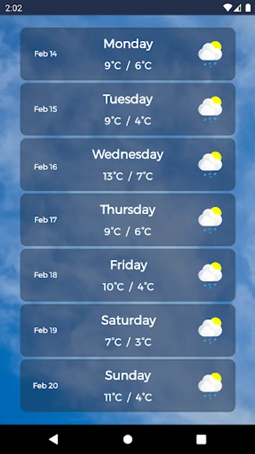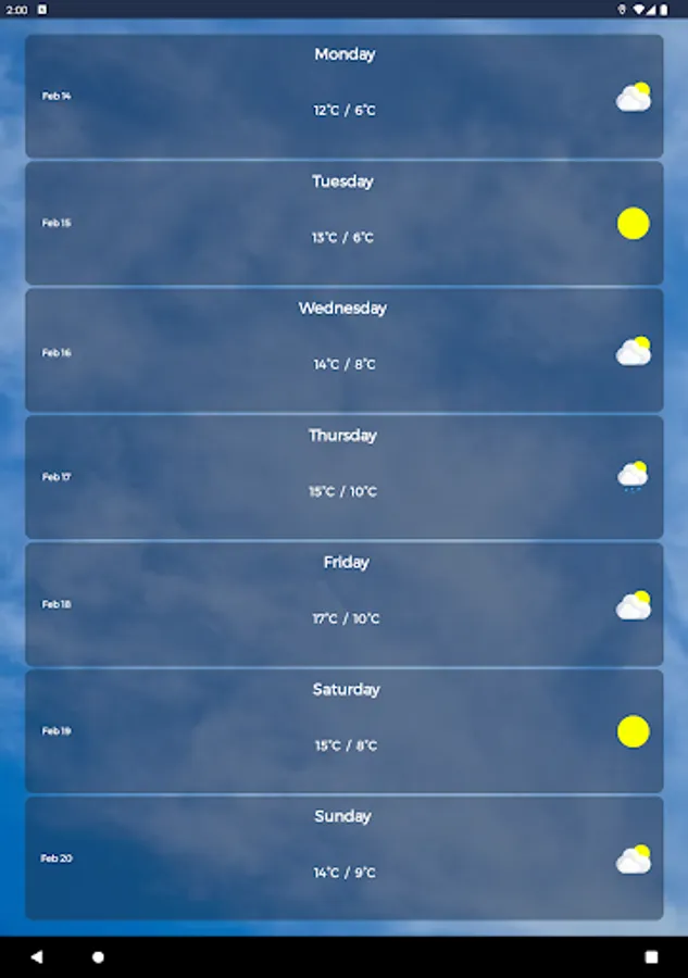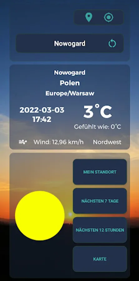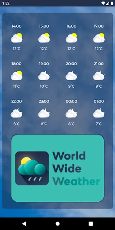 In this weather app, in addition to the current weather, you can also see the forecasts for the next 12 hours as well as for the next 7 days.